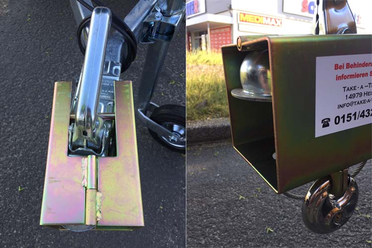 Am Ende der Mietzeit stellst Du den Anhänger bitte im Umkreis von 250m um die Anmietstelle wieder ab. Dabei bitte unbedingt ggf. vorhandene Parkverbotsschilder beachten! Das Abstellen in Parkraumbewirtschaftungszonen ist nicht erlaubt! Anschließend schließt Du den Schlüssel für das Kastenschloss mit demselben Zahlencode wieder in den Schlüsseltresor ein. Tresore mit einem blauen Pfeil haben an der rechten Seite oben eine Öffnung, durch die Du den Schlüssel auch einfach einwerfen kannst, ohne den Tresor erneut aufschließen zu müssen.